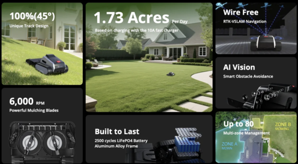 With tank-like traction, AI-powered vision, centimeter-level RTK navigation, and serious mowing muscle, it’s hands-down the most capable machine we’ve seen for homeowners with large lawns, tough terrain, or finicky grass.